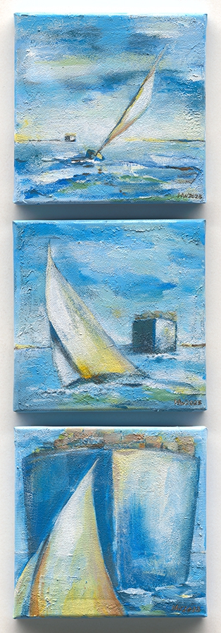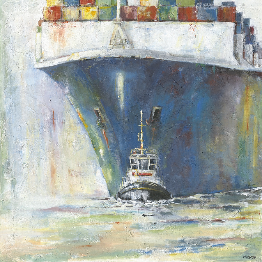 Helma Wolff (*1944 in Flensburg) schlug erst nach dem Staatsexamen der Germanistik und Sportwissenschaften und einer langjährigen beruflichen Laufbahn in der kaufmännischen Projektleitung einen künstlerischen Weg ein: 1995 startete sie in Hamburg eine Ausbildung in Grafik und Malerei. Fasziniert von dem bunten Leben und der Arbeit im Hafen, legt sie seit einigen Jahren den malerischen Schwerpunkt auf die maritime Malerei.