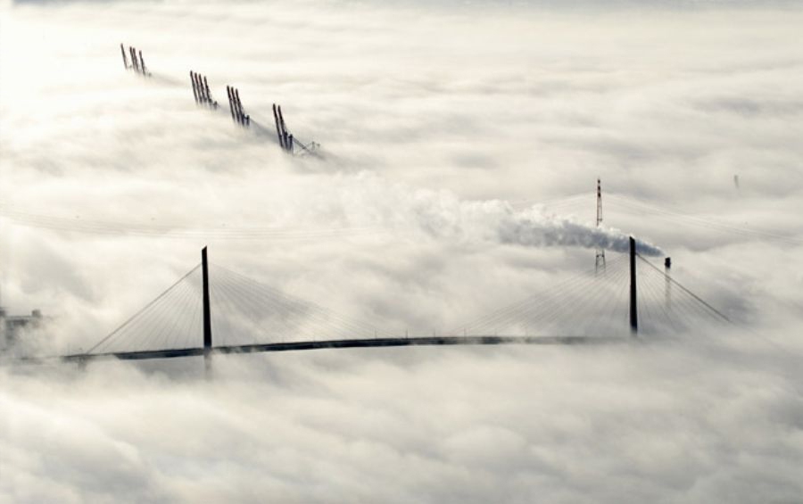 Köhlbrand und Hafenkräne im Seenebel #02.02
