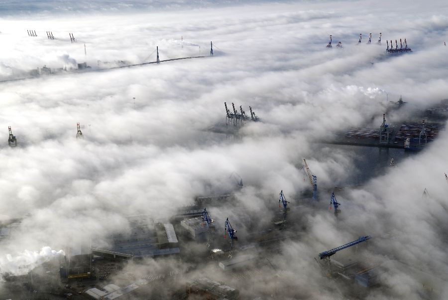 Köhlbrand und Kräne im Nebel #02.01 / 20051225-0019Hwei