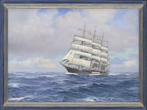 Das Gemälde ist neu restauriert, und mit farblich abgestimtem Vergolderrahmen gerahmt, weißgold/blau
