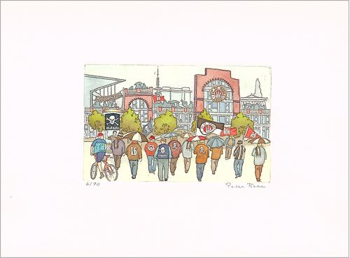 Radierung handkoloriert