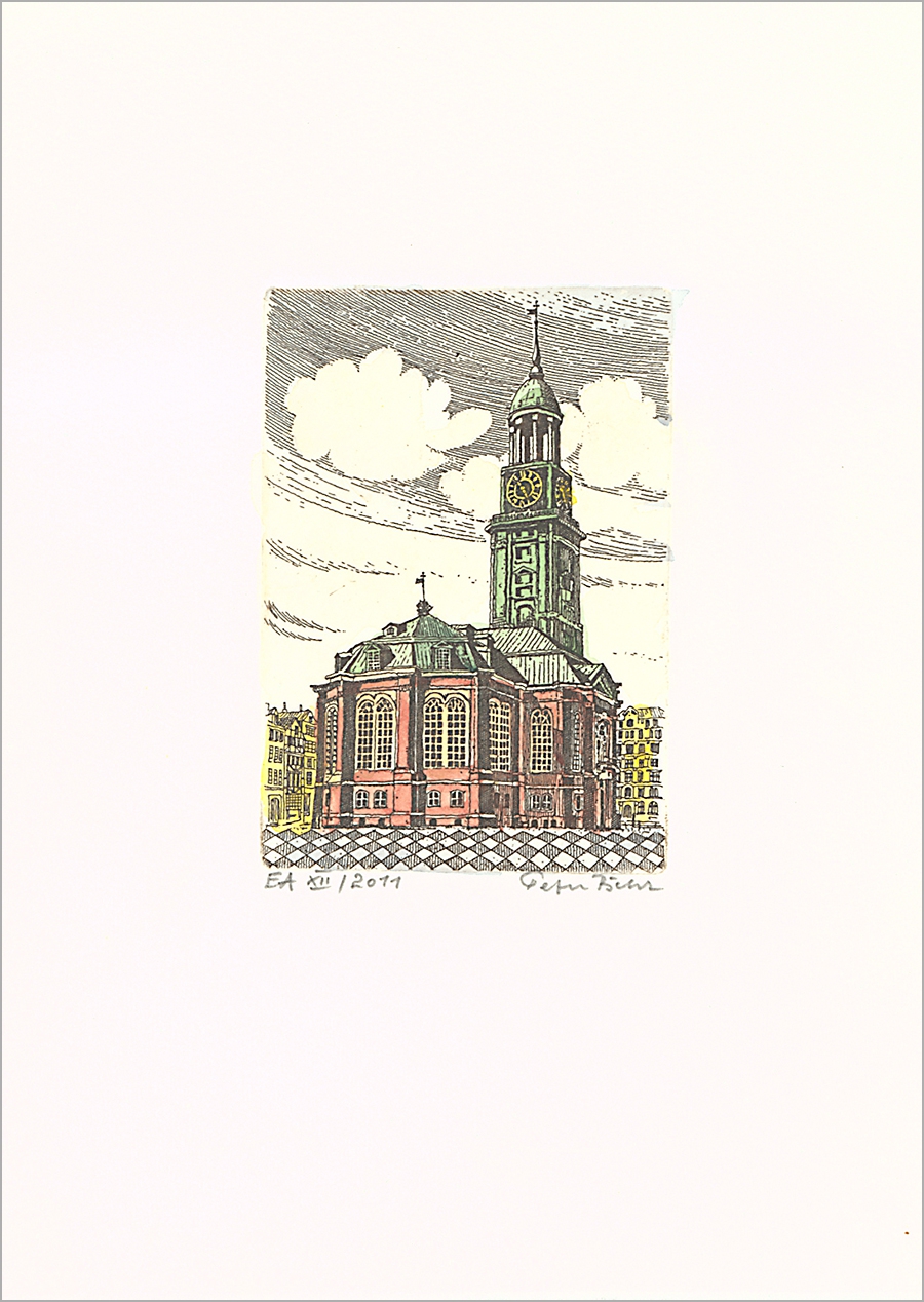 Radierung handkoloriert