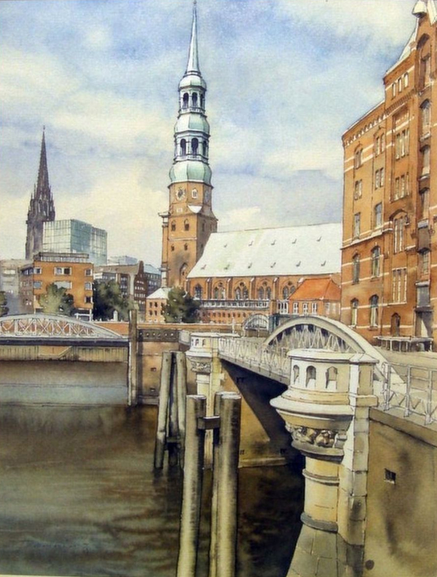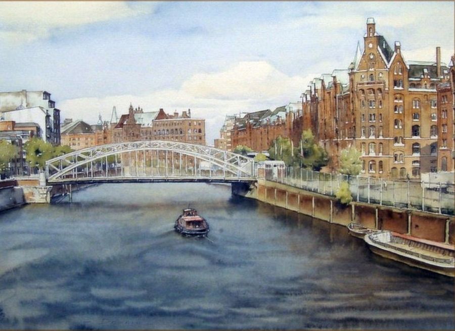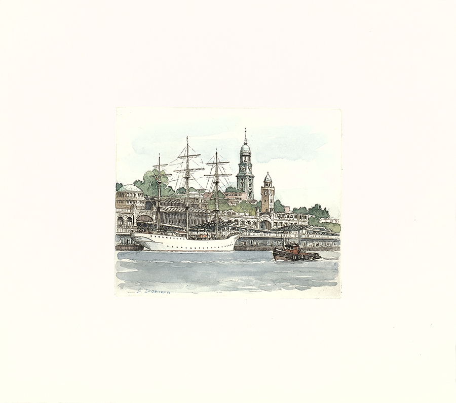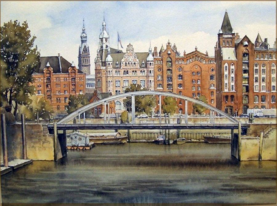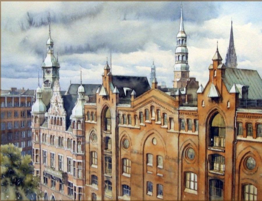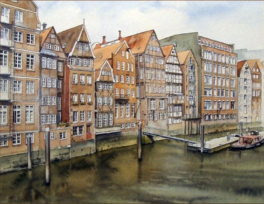 Seit seinem Studium arbeitet Domnin als freischaffender Künstler – zunächst in der UdSSR, seit einigen Jahren in Deutschland. Es entstanden zunächst vorwiegend Aquarelle in Form von Frankfurter und Hamburger Stadtlandschaften. Bei diesen Arbeiten handelt es sich um erstklassige Beispiele für das schulmäßige Umgehen mit der Aquarellrechnik. Die genaue, fast journalistische Beobachtung von Architektur und Stimmung spielt für Alexander Domnin dabei eine besonders wichtige Rolle. Es gibt nicht viele Künstler in Hamburg, die sich dem aquarellierten Dialog mit der Stadt so gewissenhaft und gekonnt widmen wie Alexander Domnin. Dabei sollte man nicht übersehen, dass das leichte, klassische Aquarell keineswegs das einfachste Stilmittel zur Widergabe konstruktiver, architekturbestimmter Sujets darstellt.