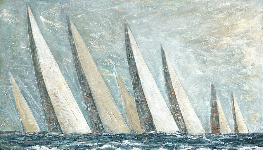 Aquarelle in einer außergewöhnlichen Naß-in-Naßtechnik mit besonders harmonischen Formen und Farben waren der Anfang, heute sind sie eine Besonderheit in jeder Sammlung. Das zentrale Motiv der Ausstellungen "the art of sailing" sind Segelschiffe und Segler, im Regattafieber und auf Sommertörn. Am Anfang standen folgende Gedanken im Vordergrund: "Meine Segler sind meist ohne Rumpf, die Wellen und der Wind, die sie tragen, haben Bedeutung. Die Besatzung ist nicht sichtbar, da wir im Augenblick der Betrachtung ihre Rolle übernehmen. Ich gehe nicht bis zur totalen Auflösung, um den Zugang zu meinen Bildern nicht zu schwierig zu gestalten, suche aber immer neue Wege, um Bewegung, Elan und Energie auszudrücken". Dreidimensionalität und Farben gewinnen später an Kraft, die Bilder werden detaillierter, Schiffrümpfe schießen durch die Wellen, der Blick in die Segel zeigt besondere Perspektiven.