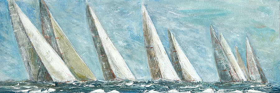 Frauke Klatt, geboren 1957 in Lübeck, malt Aquarelle auf alten Segeln, dem Material, ohne das Boote nicht segeln würden. Die Strukturen und Gebrauchsspuren werden in die lasierende Gestaltung mit einbezogen und geben den Bildern eine ganz besondere Patina. Die bereits 1997 entstandene Technik und erstmalig ausgestellten Bilder sind heute schon kleine Klassiker und dienen anderen Malern immer wieder als Inspiration. Plastische Acrylmaltechnik in großen Formaten: Hier kommt die ganze Dynamik des Regattasegelns zum Ausbruch, aber auch die bleierne Stille der Flaute an einem schwülen Sommertag.