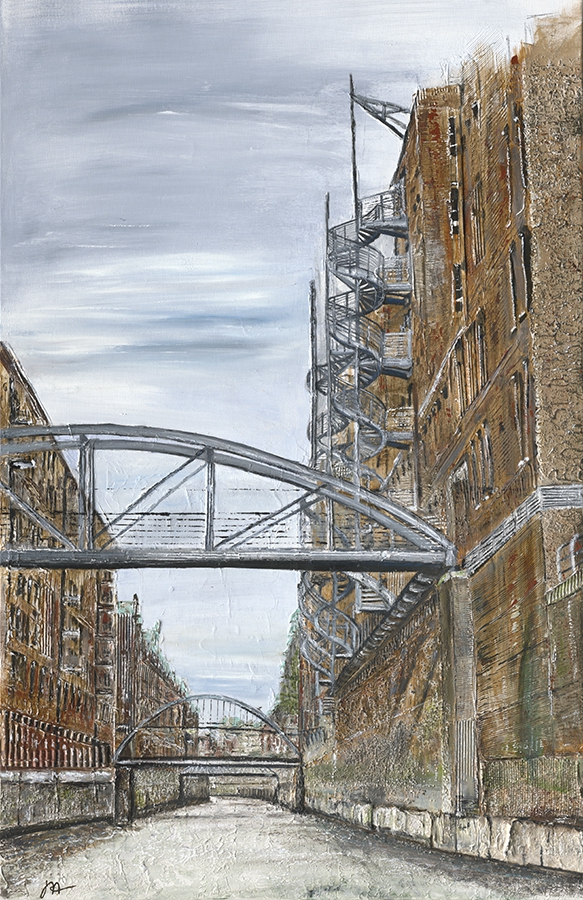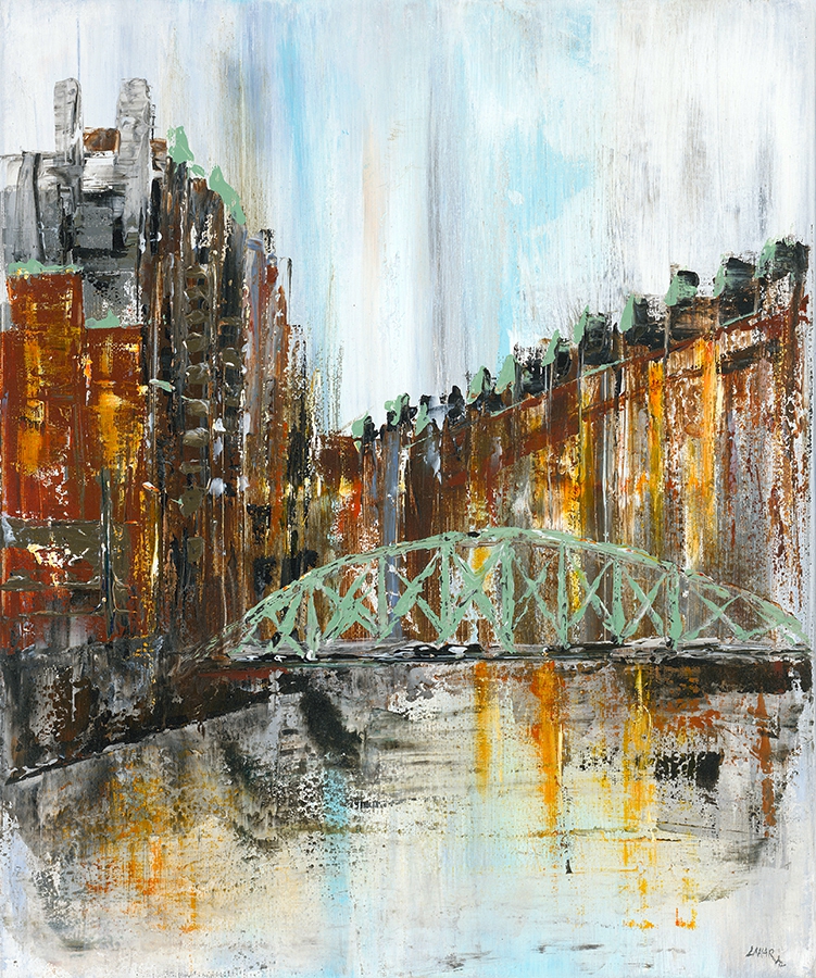 Ihre Bilder fanden bisher Beachtung und Absatz in Deutschland und dem deutschsprachigen Ausland. Laura Hadrian favorisiert für sich die Acrylmalerei, die ihrer plastischen Malweise sehr entgegenkommt. Sie experimentiert gern, komponiert ihre Werke aus dem progressiven Gefühl künstlerischer Intuition heraus. Die Verwendung der Malwerkzeuge, Farben, Acrylspachtel und Materialkombinationen – Pappe/Papier, grobe und feine Sandmischungen, Metallpartikel – ergeben sich im Laufe des künstlerischen Entstehungsprozesses. Das Bild erhält dadurch diverse Strukturebenen, die eine reliefartige Oberfläche vermitteln.