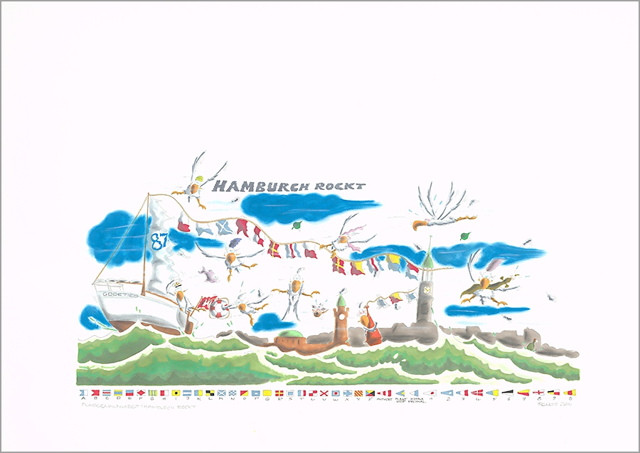 Ende der Neunziger Jahre begann er mit ersten Karikaturen, aus denen er nach und nach einen eigenen Stil und Humor entwickelte, in dem oft Tiere die Hauptrolle spielen. Seine Liebe zum Meer und zur norddeutschen Fauna und Flora gehört wiederholt zu seinen bevorzugten Motiven, aber auch sozialkritische Zeichnungen sind in seinem Repertoire zu finden. Ein besonderes Markenzeichen sind Segelknoten, die er unter Anderem mit Wattwürmern auf amüsante Art und Weise graphisch verarbeitet. Seit 2014 sind die Originale so wie Print on Demand in der Galerie Deichstrasse erhätlich.