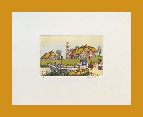 Radierung handkoloriert