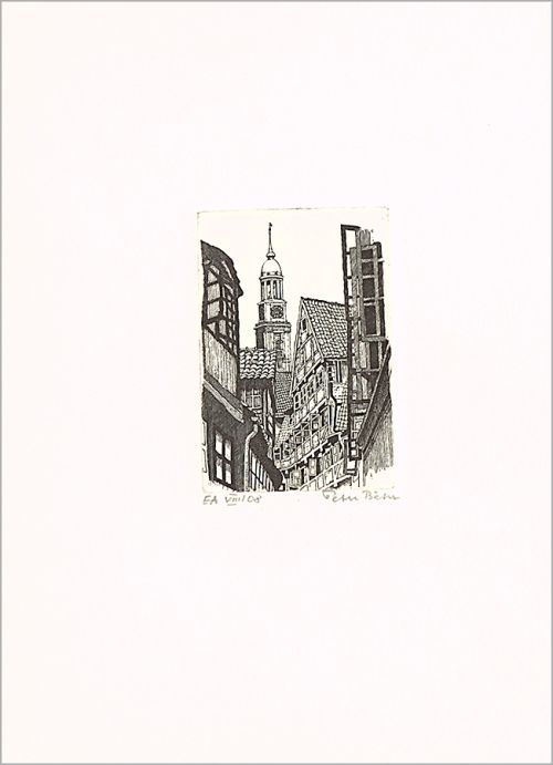 Radierung handkoloriert