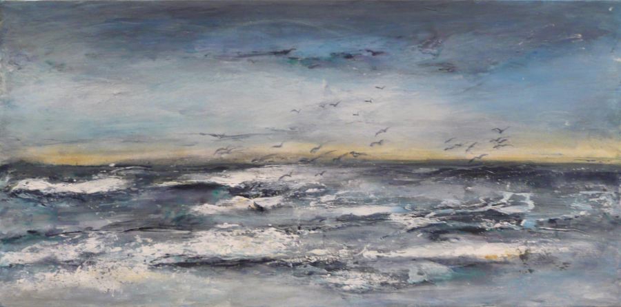 Wer im Norden geboren ist, hat die Küste im Blut. Wind und Wasser nagen an Land und Strand. Die Gezeiten tragen Sand und Steine an, aber auch ab. Die Schönheit der Landschaft hat immer etwas Strenges, unterschwellig Gewalttätiges. Mit ihren Küsten-Strichen setzt die Künstlerin Petra Jacobsen dieser unzähmbaren Natur ein Denkmal. Ihr pastöser Auftrag aus Acrylfarben und -pasten, ihre Schichtungen aus Sand und Pigmenten, ihre Strukturen aus Mal-Duktus, Verlauf und Verwerfung erfassen dabei die Seele dieser ursprünglichen und unverwechselbaren Landschaft.