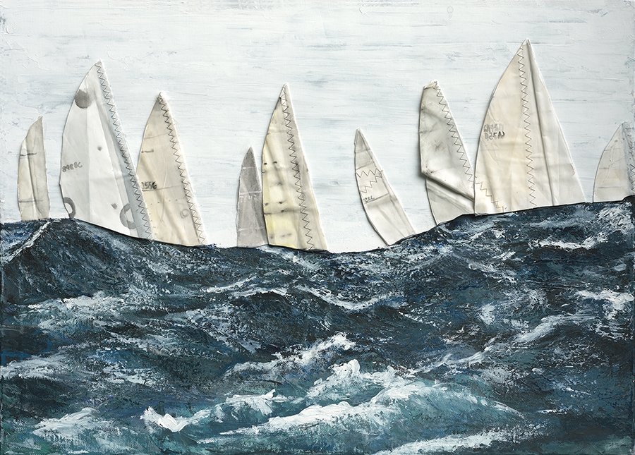 Eine wunderschöne Welt fängt die Künstlerin in Werken ein, die die Liebe zum Meer mit Lebensfreude und neuen Perspektiven vereinen. Überraschend vielfältig und experimentierfreudig reicht das Portfolio von Spachtelkunst über Collagen mit upcyceltem Segeltuch und extrem haptische Ölbilder bis hin zur Zeitungs-Leinwand.